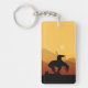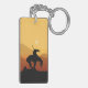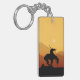 El fin de la silueta de senderos con la impresionante cadena de teclas de puesta de sol