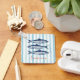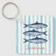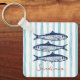 Aprovecha la estética del núcleo del pescador con esta elegante cadena de claves, con tres sardinas sobre rayas azules verde azuladas y texto de personalizable.