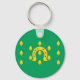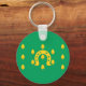 Keychain with design with a flag of historic county of Rutland, in England, Great Britain; green flag with acorns and a golden horseshoe in the centre