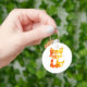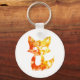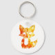 un diseño decorativo de un pequeño zorro con acuarelas naranjas y amarillas en la silueta de un keychain