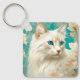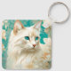 fondo turquesa flores blancas anticuadas y una hermosa llama Lynx punto gato siamés AI Art de minx267