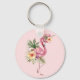 Flamingo exótico lindo y flores en fondo rosa pálido