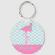 Flamingo rosa moderno con fondo azul y nota de agradecimiento.