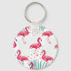 Llavero Flamingo y hojas tropicales, patrón de verano.