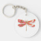 Dibujado artísticamente, dorado, libélula con joyas de color rojo y alas decoradas con rojo, floreciente, cerezo japonés con joyas sobre fondo blanco. Dragonfly de oro.