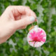 Flor de bonito con pétalos rosados que explotan en salpicaduras de pintura rosada sobre una gran pared blanca detrás. Se rocían grandes gotas de pintura y se salpicaban por todas partes. Diseño contemporáneo abstracto y moderno de Guay.