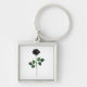 Rosa negro simbólico, dibujado de forma artística, con tallos verdes y hojas sobre fondo blanco. Rosa negro.