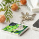Colorido Arum Lilies tropical en blanco con pintura de acuarela de hojas verdes. Su hermoso diseño botánico colorido proviene de una pintura original.
