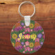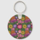 Hermosa Keychain con estampado personalizado de flor verde silvestre es un diseño floral lleno de colores como el rosa y el amarillo y contiene flores como girasoles, flores de confluencia y amapolas
