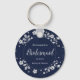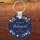 Elegante y moda de color blanco floral Bridesmaid Gift, personaliza este llavero.