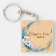 Un lindo cumpleaños, un pastor de medias, o regalo del Día de la Madre para las mamás gemelas en tu vida. Un fondo neutro permite que la luna azul y las flores se reproduzcan. El texto de Feliz Twin Mama es personalizable.
