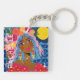 Un retrato vibrante y alegre que celebra la belleza, la naturaleza y la energía femenina. Esta colorida obra de arte cuenta con una mujer con el cabello azul y rosa que fluye, adornada con flores tropicales brillantes, colocada sobre un fondo azul de ensueño con un sol amarillo radiante. Los efectos de papel espumoso le dan un toque de encanto. Personaliza con un nombre.