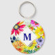 Bonito rosa, amarillo y morado acuarela ai art flor cadena de claves florales. Añadir inicial en el área personalizada.