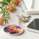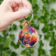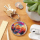 Floral Resumen Art Naranja Flores Rojas Azul Primario Keychain Redondo