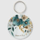Llavero de flores blancas de turquesa hojas doradas elegantes. Diseño único, hermoso y elegante. Fácil de personalizar. El estilo, tamaño y colores de la letra pueden ser cambiados. Artículos a juego disponibles.