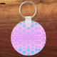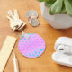 Este patrón colorido brillante presenta flores de círculo geométrico rosa, lila y azul celeste sobre un fondo lila.