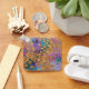 Flores pintadas de oro sobre un fondo rosa, lila, violeta y turquesa. Personalízala con tus iniciales.