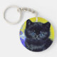 ¡Cadena de llaves con un gato negro al estilo de Vincent van Gogh! Este querido ojo azul se sienta adorablemente con flores moradas contra una pared verde y una mesa amarilla. ¡Un regalo maravilloso para los amantes del gato y los coleccionistas holandeses de arte!