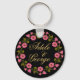 Un boda floral bellamente rico y monótono Keychain con acuarela rosa floralwreath y sobre el fondo negro. Hermosa corona floral rosa acuarela rodea tu texto. Personalice el texto de ejemplo que se muestra en la plantilla de diseño con los nombres de la novia y del novio u otro texto deseado.