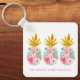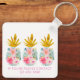 Esta linda llave personalizada presenta piñas elegantes con flores tropicales rosadas y doradas. Personaliza con tu elección de nombre y texto especial en el frente y la parte posterior.