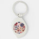Flores de color rojo, azul y naranja negrita con hojas en fondo rosado.