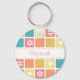 Una cadena de llaves de tejas cuadradas de estilo giratorio con esquinas redondeadas de estilo moderno con colores primaverales de bonito, decoradas con bonitos corazones y flores de margarita retro. Personalice añadiendo el nombre de cualquier chica de chicas a este diseño retro moderno en tonos de amarillo rosa coral y azul turquesa.
