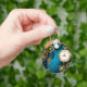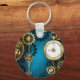 fondo turquesa, texturado, de vapor punk con bronce y oro, llave de plata y reloj. Estilo Steampunk.