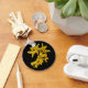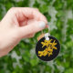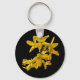 Este llavero presenta flores de forsythia amarillas doradas sobre un fondo negro puro. Las forsythias son uno de los primeros arbustos florecientes en primavera. Cuando esta flor muestra sus pétalos de oro brillantes en el jardín, sabemos que el invierno se ha ido por otro año.