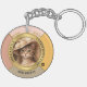 Un llavero femenino elegante que presenta la foto de tu gato personalizado enmarcado por un diseño de terracota rosa y dorado. También puedes dejar a la gata vintage en su lugar si te gusta.