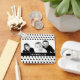Patrón de puntos de polka blanco y negro con etiqueta negra al personalizado con tu propia foto y personaliza con texto.