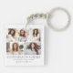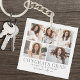 Un llavero de graduación boho simple y elegante con un collage de cinco fotos para un toque personalizado. El diseño muestra cinco fotos cuidadosamente dispuestas, enmarcadas por un fondo blanco limpio con texto gris suave. "Clase de 2026", el nombre del graduado y la escuela se muestran en fuentes discretas y sofisticadas para un aspecto refinado.