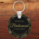Estas cadenas están diseñadas para dar como favores a las damas de honor en tu fiesta de bodas. Presentan un diseño sencillo y elegante con un fondo negro clásico, letras de guiones dorados y un florido borde floral de Relieve metalizado de imitación dorada. El texto dice "niñera de honor" con espacio para su nombre, los nombres de la pareja y la fecha del boda. ¡Una forma perfecta de agradecer a sus damas de honor por ser parte de su día especial!