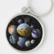 Planetas fractales hermosamente diseñados rodeados de estrellas suspendidas en el espacio, en los principales colores de oro y azul.