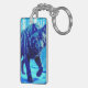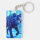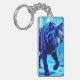 El lobo de la escarcha negra azul grande acechando a través de un diseño de bosque nevado.