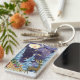 Magical watercolor illustration of a reindeer with sleigh in a forest with Christmas trees, covered with snow and lit by the light of the full moon in the starry sky.