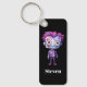 Keychain con un ilustracion lindo. Monstruo Frankenstein con pelo rosado y púrpura y traje y corbata de dapper.