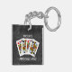 Este divertido diseño cuenta con un doble pinocle compuesto por dos reinas de espadas y dos jack de diamantes.