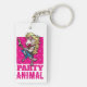A funny unicorn 80s rocker on an acrylic keychain. Use "Personalize this template" to tweak the default "PARTY ANIMAL" text and create a unique, customized gift; text changes are reflected on both sides. Featuring a glam rock unicorn, accessorised to the max with sparkling blue star guitar, zebra print leggings and big jewellery. If unicorns formed bands, it would have to be glam rock.