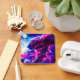 A powerful cosmic leopard emerging from vibrant clouds of neon pink, electric blue, and deep violet.