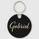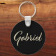 Ein sehr schöner edler personalisierter Button Schlüsselanhänger im whitegold Lettering Look auf schwarz für Gabriel.