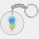 Grandes medusas de azulejo brillantes, de dibujos artísticos, con largos tentáculos en blanco, pintadas con fondo multicolor de acuarela. Mariscas arcoiris.