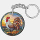 Llavero Gallo de gallinas de vidrio templado y amanecer