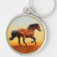 Caballo de mustang salvaje que corre a través de un campo seco de hierba. Obra de arte realista creada a partir de una pintura al óleo original del artista de la fauna y la flora silvestres Crista S. Forest.