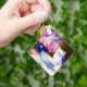 Cadena de llaves con un hermoso gatito blanco con una cinta morada! Este florido gatito se encuentra junto a un bol azul y un jarrón de flores rosas, violetas y blancas. Un regalo maravilloso para los amantes del gato y del arte victoriano.
