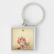 Keychain con el gatito de Meta Plückebaum con cinta roja (b. 1876). Un gatito gris con rayas oscuras está bellamente adornado con una cinta roja. El gatito juega con una abeja. Las flores amarillas decoran el primer plano. ¡Un regalo maravilloso para los amantes del gato y del arte alemán!