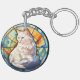 Un bonito diseño de vidrio manchado con un amigo de la granja Gato Blanco