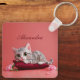 Llavero Gato de enero lindo con claveles