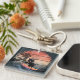 Keychain de gatos ondulantes del atardecer: un gato negro surfeando sobre una ola, con la puesta de sol en tonos rosados y naranjas, creando una escena caprichosa y surrealista.