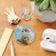 Un gatito de gatito, flores y pájaro rojo en un círculo. El texto se puede personalizar.
