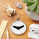 Esta tierna cadena de teclas muestra un murciélago vampiro espeluznante con la cara de un gato. El murciélago está volando con las alas estiradas y tiene los ojos verdes del mal de un gato espeluznante y algunos colmillos blancos aterradores. Esta quimera espeluznante es la criatura perfecta para una Halloween inquietante.